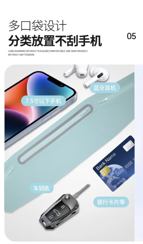 Comfortable and skin friendly ultrathin Sports Running waist pack with three pockets and five colors